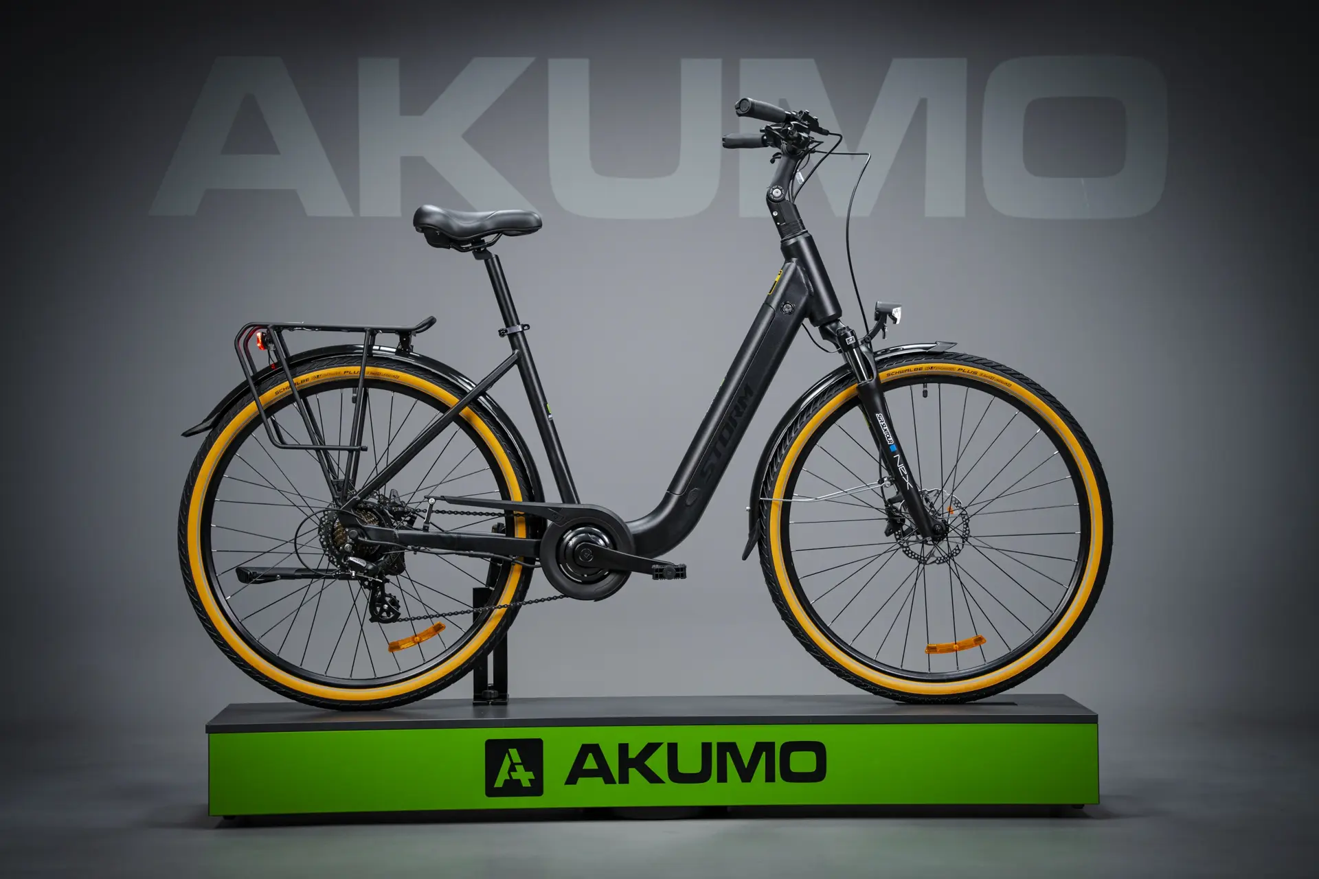 Městský model elektrokola se sníženým nástupem od českého výrobce Storm na zadním motoru Bafang. Kolo je určeno pro osoby, které mají problém s nástupem na klasické elektrokolo.
